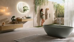 Antao von Villeroy & Boch: Naturinspirierte Badkollektion mit organischen Formen. Entdecken Sie tautropfenförmige Waschtische, freistehende Quaryl-Badewannen und harmonische Möbel in erdigen Farbtönen. Designt von kaschkasch für Ihr Wohlfühlbad.